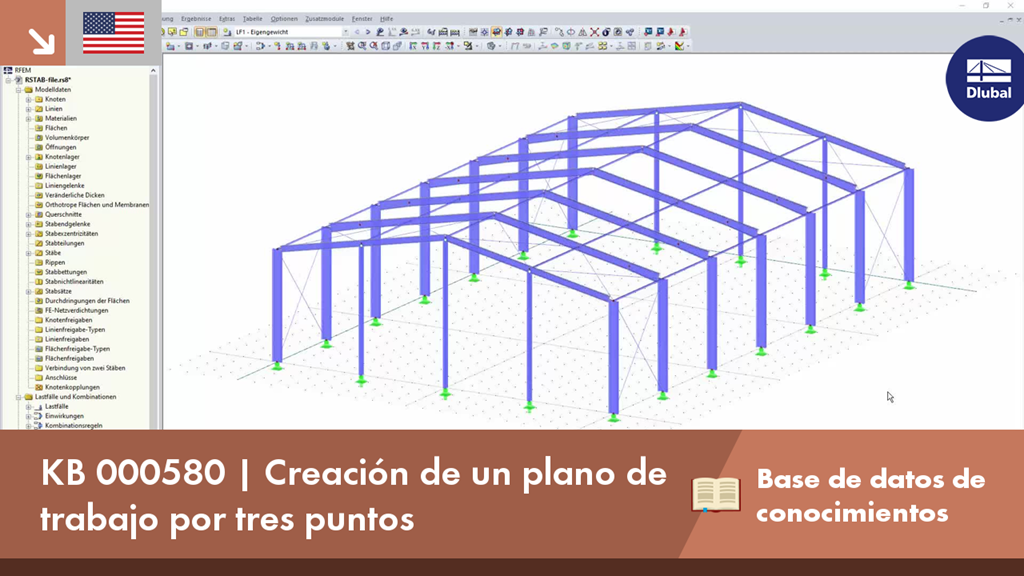 Tanto en RFEM 5 como en RSTAB 8, ahora es posible crear un plano de trabajo simplemente seleccionado tres puntos. Ya no es necesario crear un sistema de coordenadas definido por el usuario.