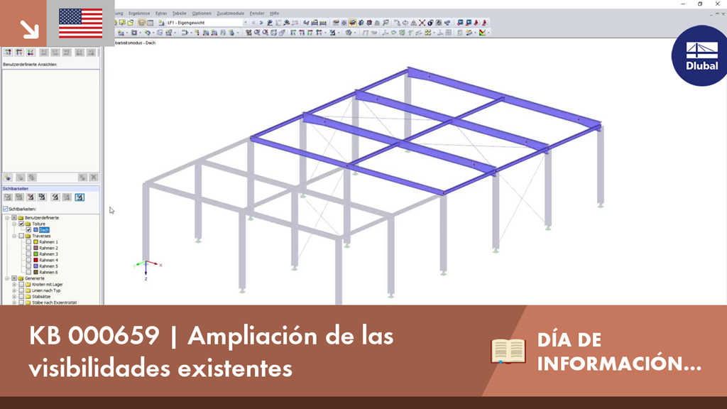 Las visibilidades definidas por el usuario facilitan el manejo del programa. Una vez creado, cualquier grupo de modelos se puede ocultar o mostrar rápidamente. Esto facilita, entre otras cosas, el análisis de los resultados en estructuras 3D más grandes, sino también la creación del informe. Al cambiar la geometría, es posible que deban actualizarse las visibilidades existentes.