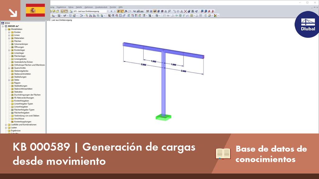 Con RFEM, puede generar cargas en barras, superficies o sólidos resultantes de los movimientos. Así, por ejemplo, las fuerzas de frenado o aceleración se pueden generar automáticamente a partir de movimientos lineales o de movimientos de giro en un sistema estructural.