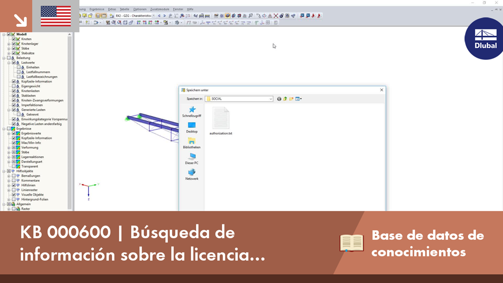 En RFEM 5 y RSTAB 8, puede ver información detallada sobre la licencia utilizada actualmente y el controlador de llave instalado. En el caso de tener problemas con la licencia, puede crear un archivo de texto creado al soporte técnico de Dlubal Software, que nos permite proporcionarle un análisis rápido y eficaz. Para crear el archivo, seleccione "Ayuda" → "Autorización" → "Diagnóstico".
