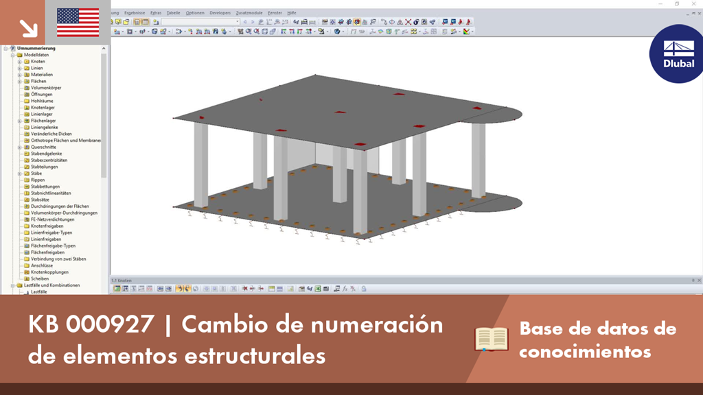 En RFEM y RSTAB, hay varias opciones para volver a numerar los elementos estructurales individuales, como nudos, líneas, barras, superficies o sólidos.