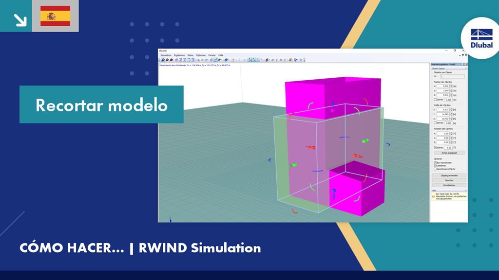 Utilice la función "Recortar modelo" para recortar partes del modelo en RWIND Simulation.