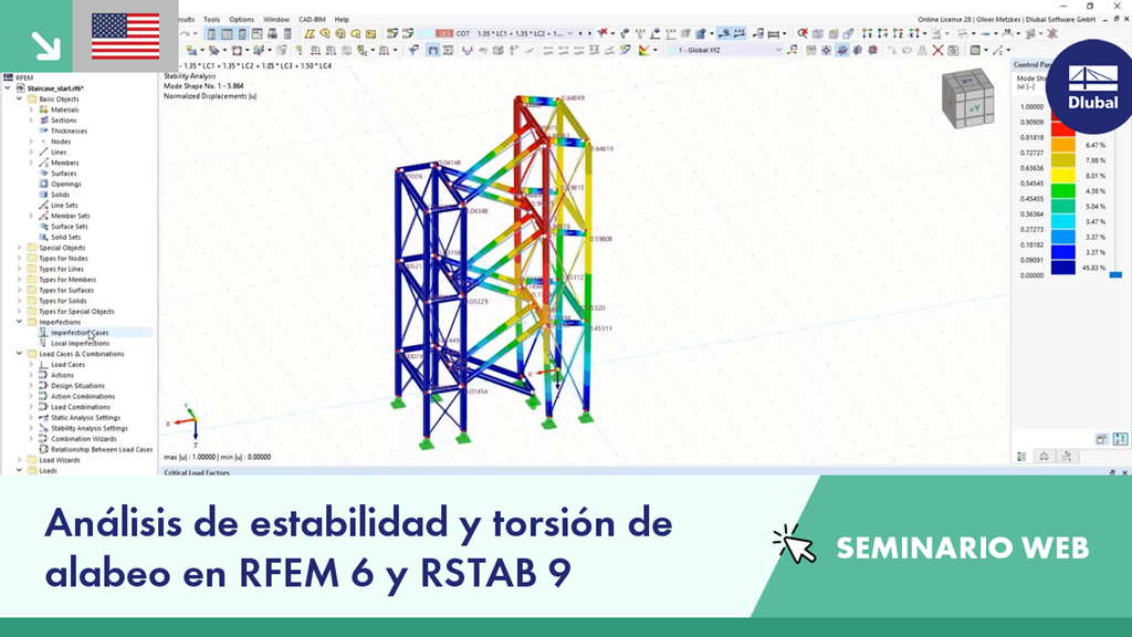 En este seminario web, le mostramos cómo realizar análisis de estabilidad y de torsión de alabeo para estructuras de acero en RFEM 6 y RSTAB 9.