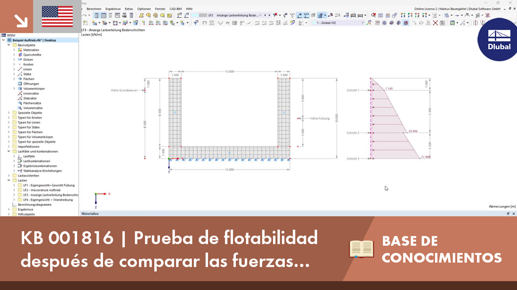 KB 001816 | Cálculo del empuje hidrostático después de comparar las fuerzas del peso y considerar las reacciones del suelo