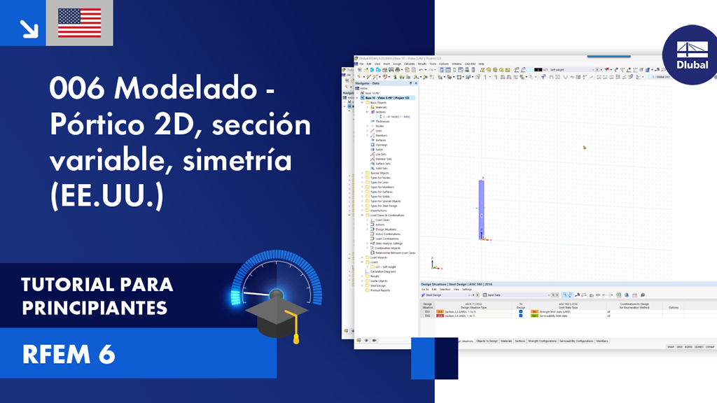 En este vídeo, crearemos nuestro primer pórtico bidimensional. Para esto usamos varias funciones útiles en RFEM como "Simetría".