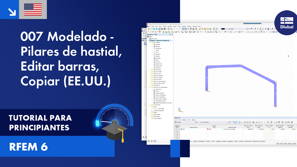 En este vídeo, creamos un pórtico en 3D a partir de un pórtico bidimensional. Para hacer esto, utilizamos algunas funciones muy útiles de RFEM, como "Mover y copiar".