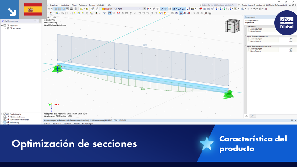 En los complementos de cálculo y dimensionamiento (como Cálculo de hormigón, Cálculo de acero, Cálculo de madera, etc.), puede optimizar las secciones.