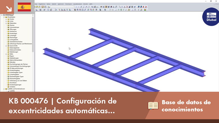 En las ventanas de entrada para barras, seleccione la alineación de la sección; por ejemplo, en el borde superior o inferior de la sección. A continuación, defina el desfase del eje relativo a la barra de referencia, así como a la barra de referencia en sí. El programa determina automáticamente la excentricidad por medio de las dimensiones definidas de las secciones de la barra.