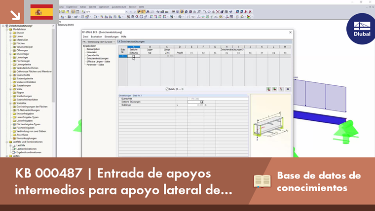 Dependiendo del formato de diseño, se puede especificar una determinada opción de entrada. Por lo tanto, los apoyos en nudos no se ofrecen en el módulo adicional RF-/STEEL EC3 para el método de barra equivalente, porque las condiciones de contorno se definen por las longitudes eficaces. Como resultado, solo es posible usar el apoyo intermedio. Los apoyos en nudo y los apoyos intermedios están disponibles para los diseños según el Método General o con RF-/STEEL Warping Torsion. Luego se usan dependiendo de si un nudo ya está definido en el modelo principal o no. Algunos módulos adicionales, como RF-/ALUMINIUM, ofrecen la posibilidad de elegir entre una entrada tipo barra con apoyos intermedios o un conjunto de entradas tipo barra para apoyos en nudo.
