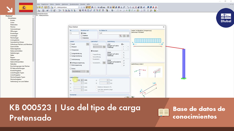 Si, por ejemplo, utiliza un cable entre dos apoyos, el esfuerzo axil corresponde al esfuerzo de pretensado. Si se conectan dos ménsulas con un cable pretensado, la fuerza axial en él dependerá de la rigidez de las columnas. Para una fuerza de pretensado final, el pretensado inicial solía ser incrementado por interacción manual.