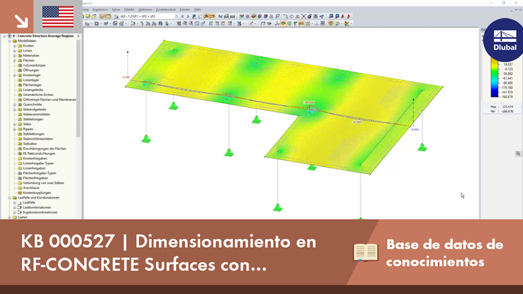 Si se define una región media en partes de una superficie en RFEM (por medio del menú superior "Resultados"), los esfuerzos internos se mostrarán por su media en esta región. Estos esfuerzos internos promediados no se aplican automáticamente para el cálculo en RF -CONCRETE Surfaces.