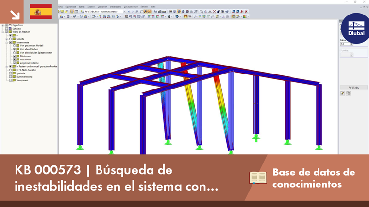 Para encontrar errores de modelado en el sistema estructural, RFEM ofrece varias opciones elegantes para localizarlos y analizarlos. Para esto, también se ha implementado una función en el módulo RF -STABILITY: La opción "Calcular la forma de pandeo para el modelo inestable de forma que se puedan comprobar gráficamente las causas de la inestabilidad" le permite calcular sistemas estructurales supuestamente inestables. Con los datos del modelo, el módulo realiza un análisis de valores propios para mostrar el resultado de la inestabilidad del componente estructural. Este método está especialmente indicado para, por ejemplo, barras que no están conectadas o que tienen demasiados grados de libertad abiertos.