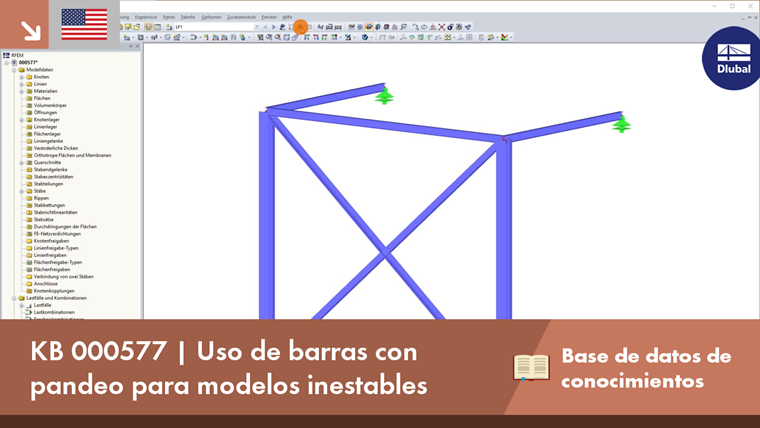 Las barras de pandeo también son adecuadas para los modelos en elos que se excede la carga crítica de una viga. Después de escribir como una barra de pandeo, se continúa el cálculo sin esta barra, de modo que es posible un análisis exitoso, considerando los efectos de redistribución.