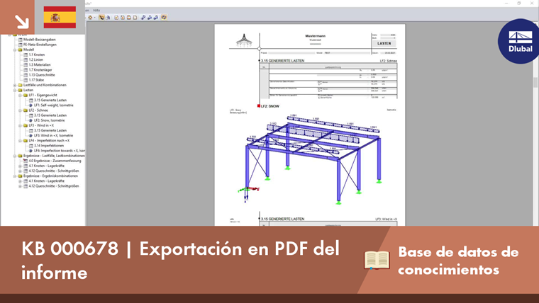 Como alternativa, puede exportar los datos a un archivo PDF Esta exportación se puede iniciar directamente desde el informe. La ventaja es que los marcadores se transfieren desde el informe, lo que facilita la navegación en el archivo PDF creado.