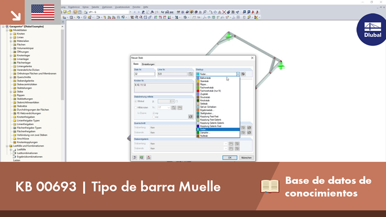 Con esta opción, se pueden simular muelles con forma de barra en el modelo de cálculo. Der Federstab wirkt ähnlich wie ein Pendelstab im Gesamtsystem und setzt seine Federeigenschaft über die Stablängsrichtung um.