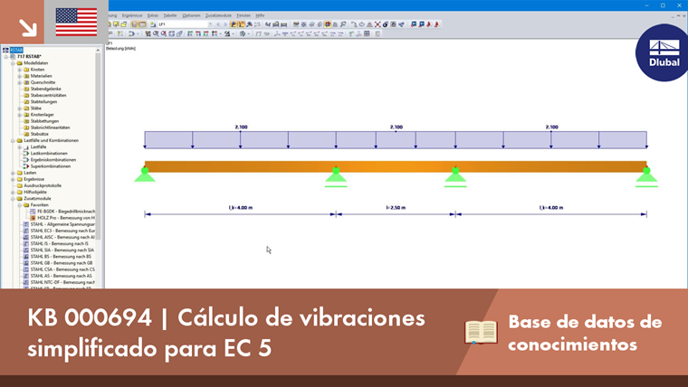 Die genauere Berechnung mit dem Zusatzmodul RF-/DYNAM Pro – Eigenschwingungen ergibt eine Eigenfrequenz von 9,86 Hz. El vídeo muestra el procedimiento.