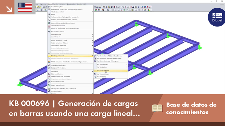 La carga del tubo se transferiría como carga en nudo sobre las vigas de debajo. Para evitar tener que dividir manualmente las partes correspondientes de la carga, puede encontrar el generador de cargas "Desde línea libre" en "Herramientas" → "Generar cargas".