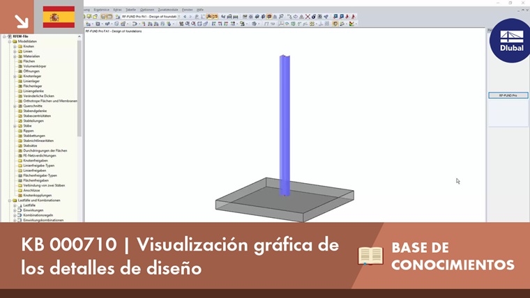 Entre otras cosas, las fuerzas en el apoyo introducidas desde los apoyos en nudo se pueden mostrar individualmente (Pz , Px , Py , Mx , Mz ) o como una carga en nudo completa. También se ilustran resultados como la distribución de la tensión de compresión bajo la placa de cimentación (ver figura).