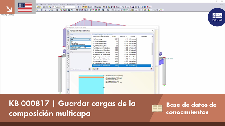 In der Mehrschichtaufbau-Bibliothek sind bereits einige Fußboden- und Dachaufbauten enthalten. Sin embargo, esta biblioteca se puede editar y ampliar según se desee. Damit sie nicht von jedem Mitarbeiter in einer Firma neu angelegt werden muss, besteht die Möglichkeit, die Datei, in welche benutzerdefinierte Aufbauten gespeichert werden, auch auf andere Rechner zu verteilen. Dazu muss die Datei "MultiLayer_User.db3" in das gleiche Verzeichnis für die Mehrschichtaufbau-Bibliothek auf dem neuen Rechner kopiert werden. Überprüfen kann man dies, indem man in den "Programmoptionen" die jeweiligen Datenbank-Verzeichnisse anzeigt.