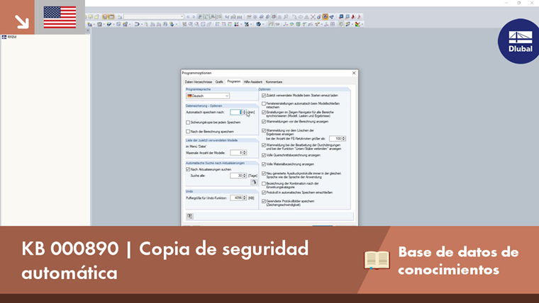 Andererseits sichern die Programme bei einem Speichervorgang den aktuellen Stand vor der eigentlichen Sicherung in der Backupdatei ".\Dateiname.rf5bak" bei RFEM und ".\Dateiname.rs8bak" bei RSTAB. Diese Option kann ebenfalls in den "Programmoptionen" unter dem Register "Programm" definiert werden.