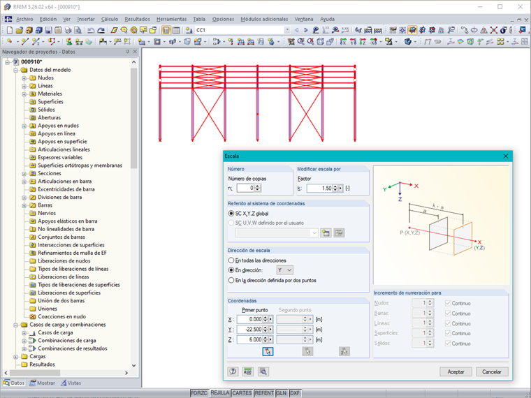 Para ajustar la separación de un pórtico, existe la opción "Escala":