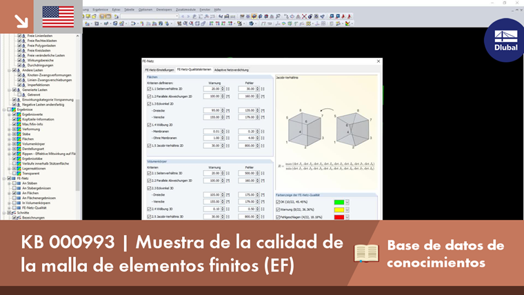 Esta opción sirve para mejorar la evaluación de la malla de elementos finitos (EF), por ejemplo para encontrar áreas con refinamientos de malla de EF necesitados. Sin embargo, esto no debería reemplazar la verificación de la malla de EF por parte de un ingeniero.