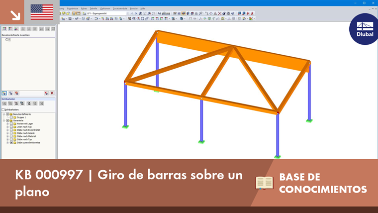 Por tanto, el diseño no es posible. Por esto, es necesario girar la barra en el plano de conexión. Dado que el cálculo manual de la rotación del elemento llevaría demasiado tiempo, RFEM y RSTAB ofrecen la opción de rotar la barra automáticamente en un plano deseado. Para hacer esto, seleccione la función "Giro de barra por nudo auxiliar" y seleccione un nudo que esté ubicado en el plano deseado y no en la barra a rotar (ver Figura 03).