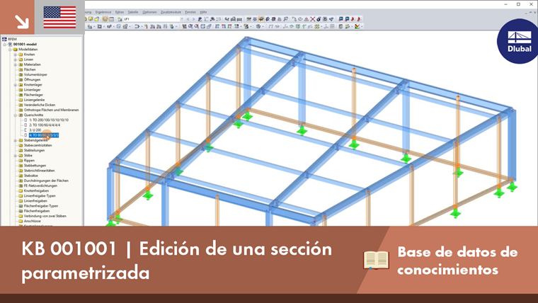 Para cambiar las dimensiones, puede ajustar directamente los parámetros en la descripción de la sección. Sin embargo, su significado no siempre es tan fácil de entender como para una sección rectangular. Para secciones más complicadas, puede usar el botón [Editar] para abrir el cuadro de diálogo de entrada original donde puede cambiar los parámetros.