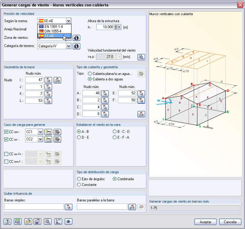 Hay disponibles generadores de cargas para estructuras de barras que pueden crear automáticamente cargas de viento según EN 1991-1-4 y CTE DB-SE-AE, y cargas de nieve según EN 1991-1-3 y CTE DB-SE-AE. Los casos de carga se generan dependiendo de la forma de la cubierta. Otro generador es capaz de crear cargas de revestimiento (hielo). Las combinaciones de cargas repetitivas se pueden guardar como plantillas.