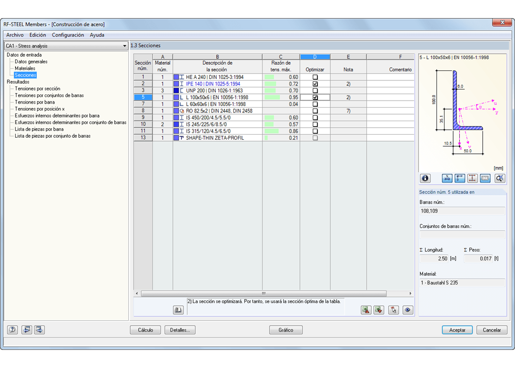 - Transferencia de las secciones optimizadas a RFEM/RSTAB