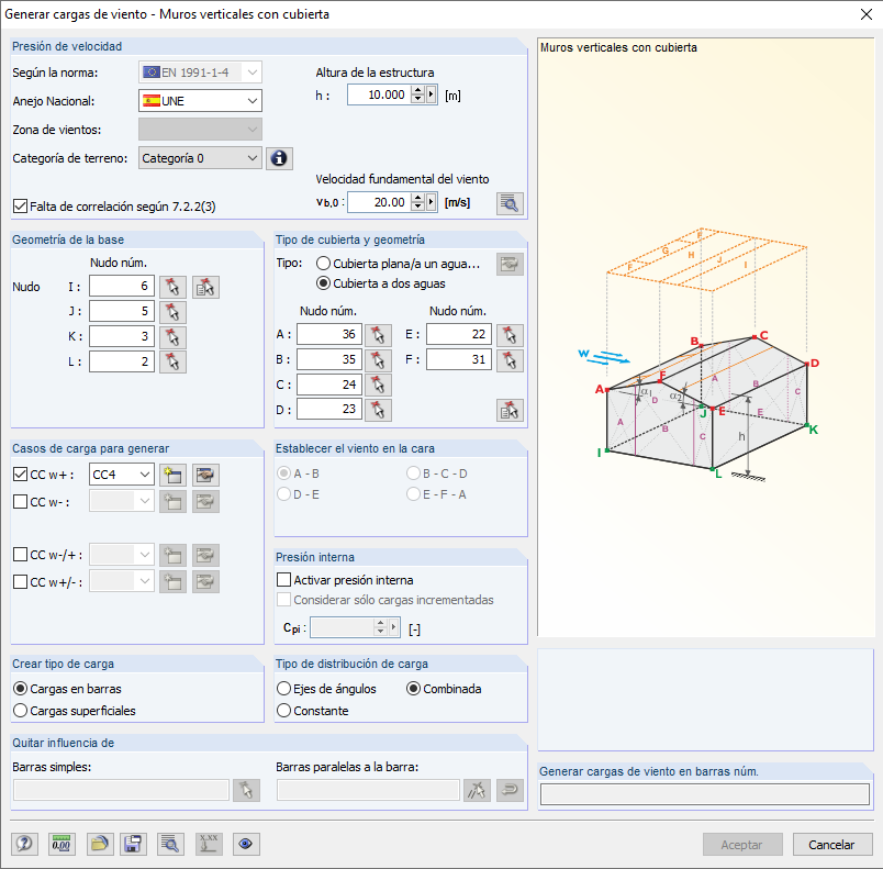 Las cargas de viento se pueden generar automáticamente como cargas en barras o cargas superficiales en los siguientes componentes estructurales (opcional con presión interna para edificios abiertos):