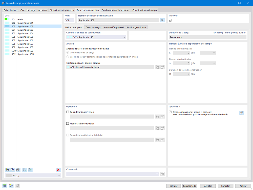 Análisis de fases de construcción (CSA) | Cálculo