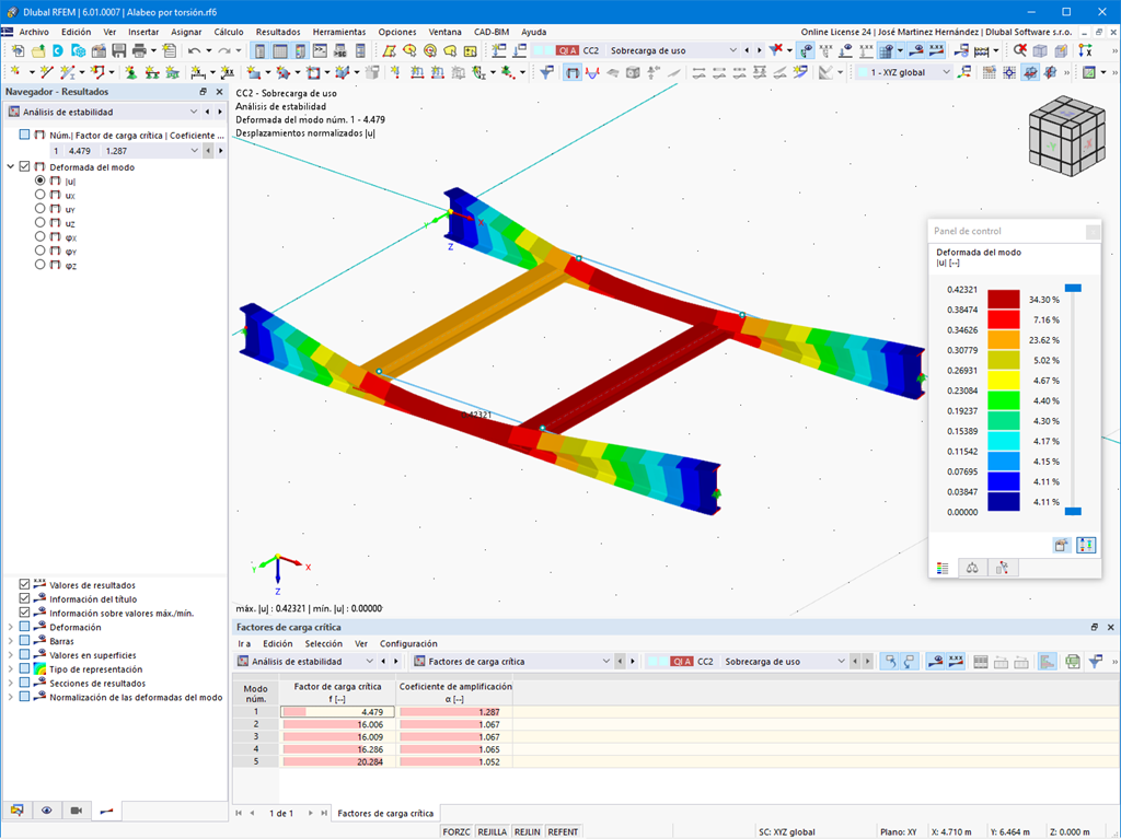 Las fuerzas internas obtenidas del cálculo con torsión con alabeo pueden luego utilizarse en los complementos para el dimensionamiento. Considere el momento de alabeo y el momento torsional secundario dependiendo del material y de la norma seleccionada. Un caso de aplicación típico es la verificación de estabilidad según la teoría del segundo orden con imperfecciones en la construcción en acero.