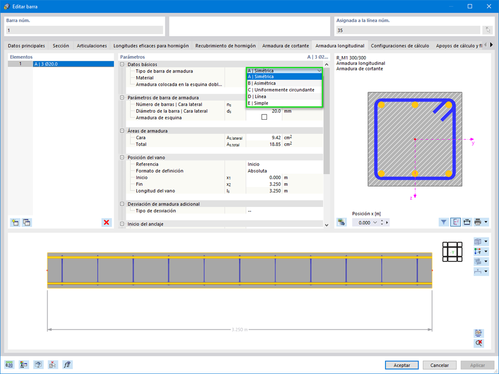 Cálculo de hormigón | Barras y superficies | Cálculo de barras
