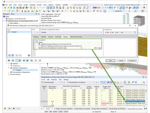 Las propiedades del hormigón dependientes del tiempo, como la fluencia y la retracción, son muy importantes para su cálculo. Puede definirlos directamente para el material en el programa de análisis estructural. En el cuadro de diálogo de entrada, se muestra gráficamente el curso temporal de la función de fluencia o retracción. Puede seleccionar fácilmente la modificación de la edad del hormigón aplicado, por ejemplo, debido a un tratamiento de temperatura.
