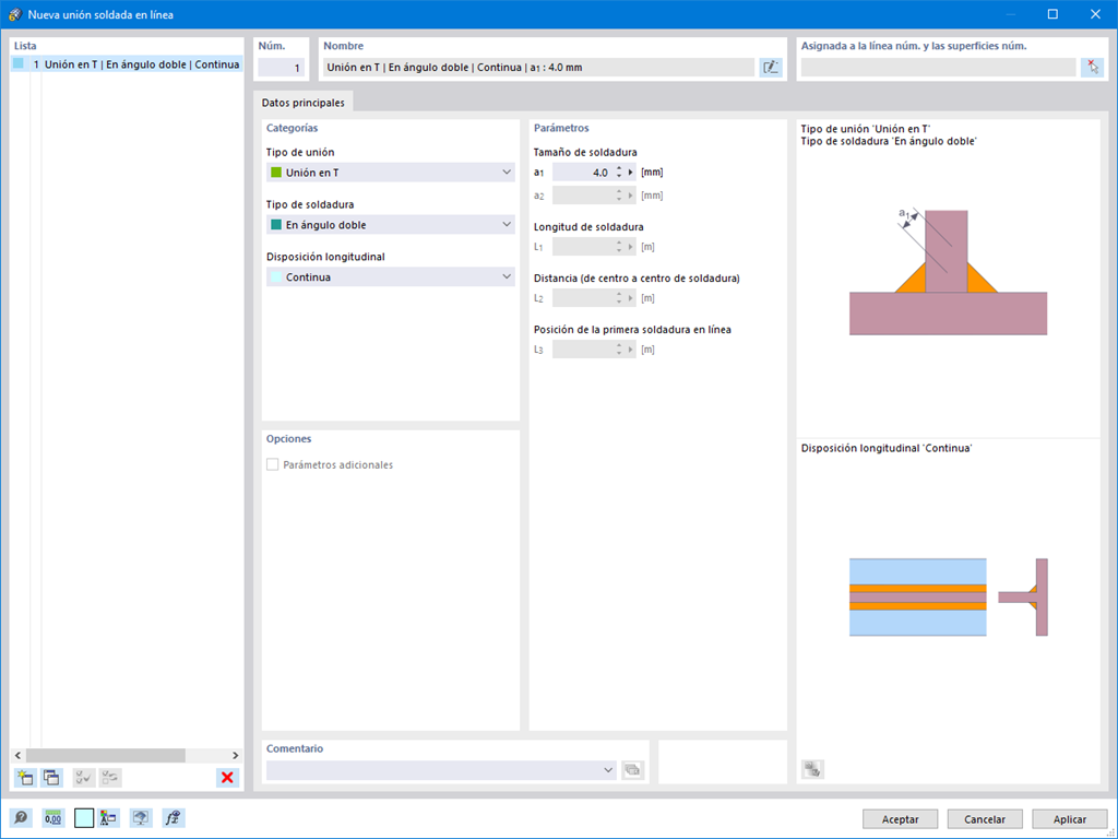 Dependiendo del tipo de unión elegido se pueden seleccionar las siguientes ejecuciones del cordón de soldadura: