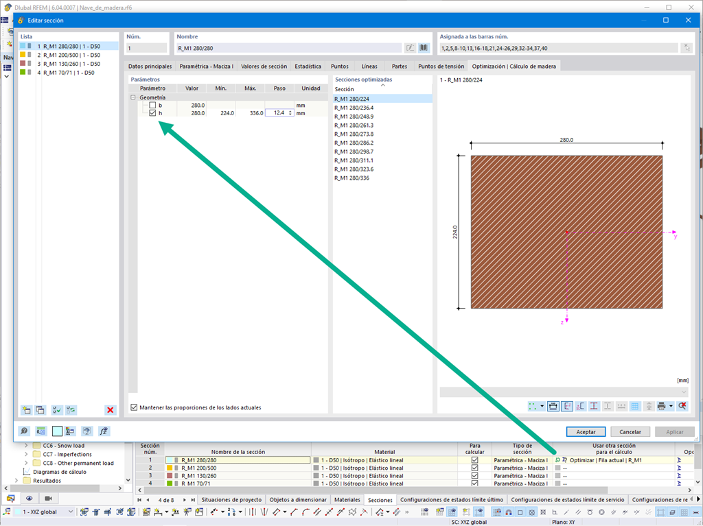 La optimización se puede realizar, por ejemplo, para secciones normalizadas de una serie, o para la anchura, altura, etc., en el caso de secciones paramétricas.
