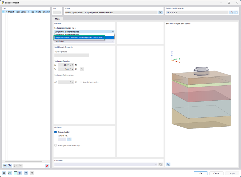 En el complemento Análisis Geotécnico, es posible seleccionar el método del módulo de rigidez (conocido de RFEM 5 como 'RF-SOILIN') como representación del suelo. La solución incluye, entre otras, las siguientes características: