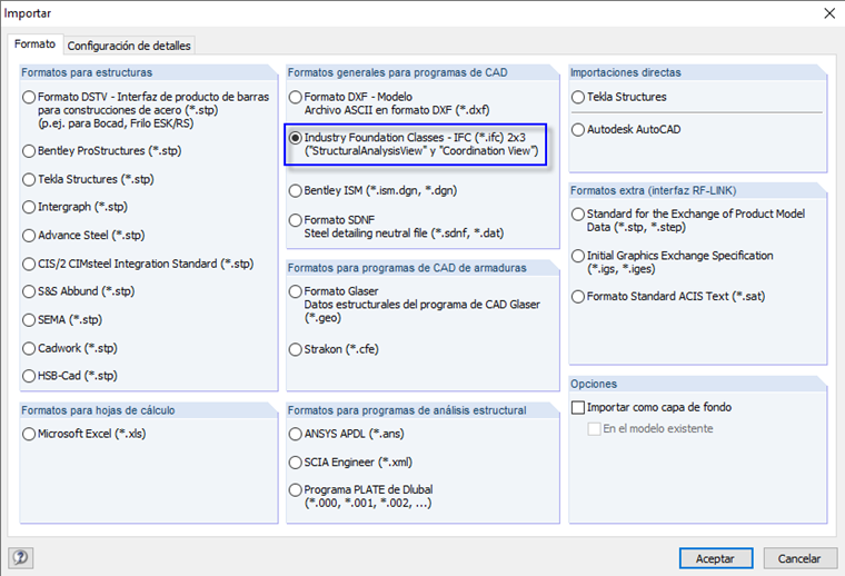 El programa 3skeng Steelwork en SketchUp le permite exportar archivos IFC basados en la "Vista de análisis estructural". Esta vista contiene el sistema estructural, incluidas las liberaciones en los extremos de las barras, así como las propiedades de las secciones y materiales.