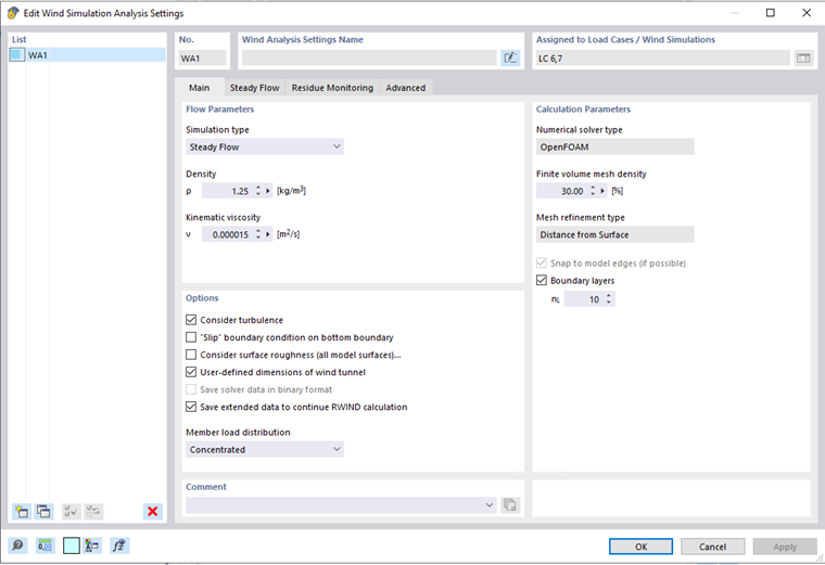Después de finalizar la simulación, puedes ver el contorno de la presión del viento obtenida por simulación CFD en RWIND. Además, se puede calcular para cada punto de sonda (Figura 7). Además, es posible utilizar tanto los valores de presión del viento experimentales como los numéricos para el análisis y diseño estructural.