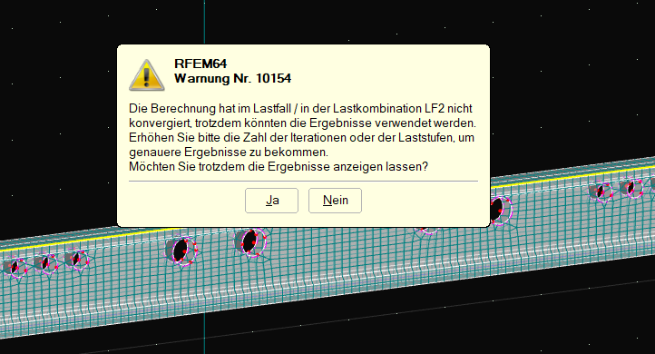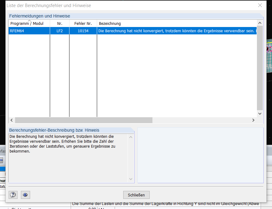 Hallo, nachdem ich einen vorgespannten stahlfaserverstärkten Binder (Faltwerkelement) unter Berücksichtigung des nichtlinearen Materialverhaltens berechnet habe, scheint das Problem der Fehler Nr. 10154 zu sein, aber ich erhalte trotzdem Ergebnisse, die ungenau und unlogisch erscheinen.