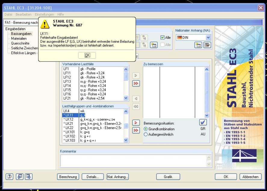 Jetzt haben wir uns RStab 7 zugelegt und da geht es halt nicht mehr. Das Programm weigert sich eine Bemessung nach EC3 Theorie I Ord. durchzuführen wenn Zu- oder Druckstäbe vorhanden sind. Eine Spannungsanalyse macht das Programm aber trotzdem.