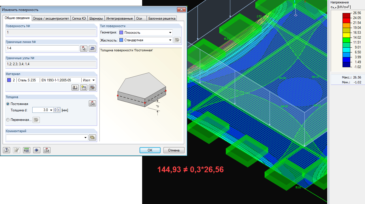 Die Kräfte in der Auflagekontur der Platte sind gleich der Spannung * Dicke der Platte, was aber nicht stimmt. Was ist der Grund?