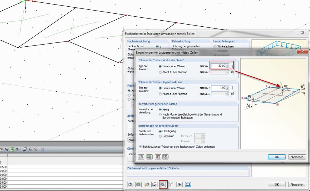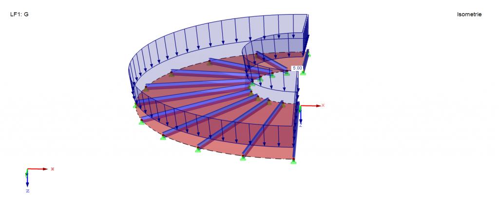 ich möchte eine Gitterschale berechnen. Die Geometrie folgt einer Rotationsfläche. Um mir die Lastaufbringung auf die vielen Einzelstäbe zu erleichtern wollte ich eine Fläche ohne Steifigkeit verwenden. Diese soll lediglich die Last auf die Stäbe "transportieren". Im Anhang habe ich ein Beispiel zur Verdeutlichung angefügt.