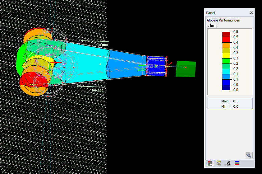 Ich mache gerade das Beispiel dieses Infotages. Dabei kriege ich eigentlich dieselben Resultat, aber bei Min 39:20 werden benutzerdefinierte Ansichten definiert, und in dieser benutzerdefinierten Ansicht zeigt es mir keine globalen Verformungen mehr an. Diese sind aber in der Totalansicht vorhanden und stimmen mit den Ergebnissen des Videos überein.