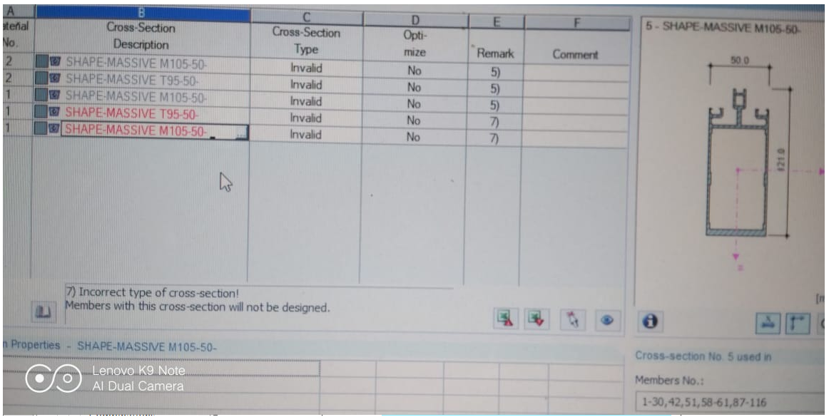 in RF- Aluminium ADM there is a problem in aluminium section import from shape massive the section appear and imported but said (incorrect type of cross section)