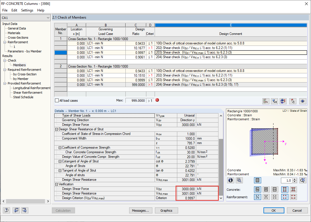 I'm having some problems on results obtained from the RF-CONCRETE Columns module, in particular the Eurocode 2 shear check according to formula 6.9 (using RFEM5).