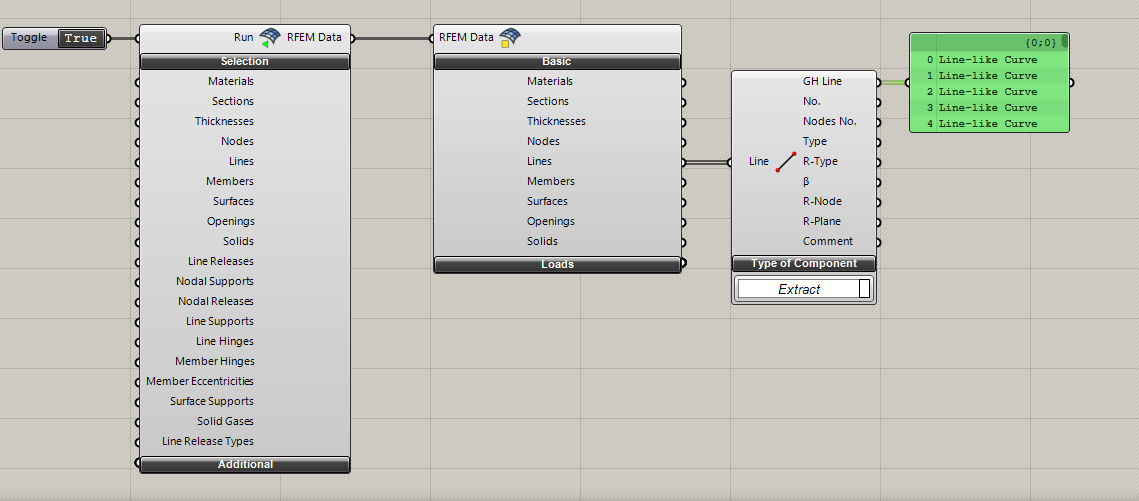 I am trying to import RFEM members (or more exactly their curve geometry) into Rhino with the Grasshopper component "RFEM Import". Importing members works, however, importing lines fails. I also cannot access the curve geometry from the imported RFEM members. I tried it with different line types and models, but nothing seems to help.