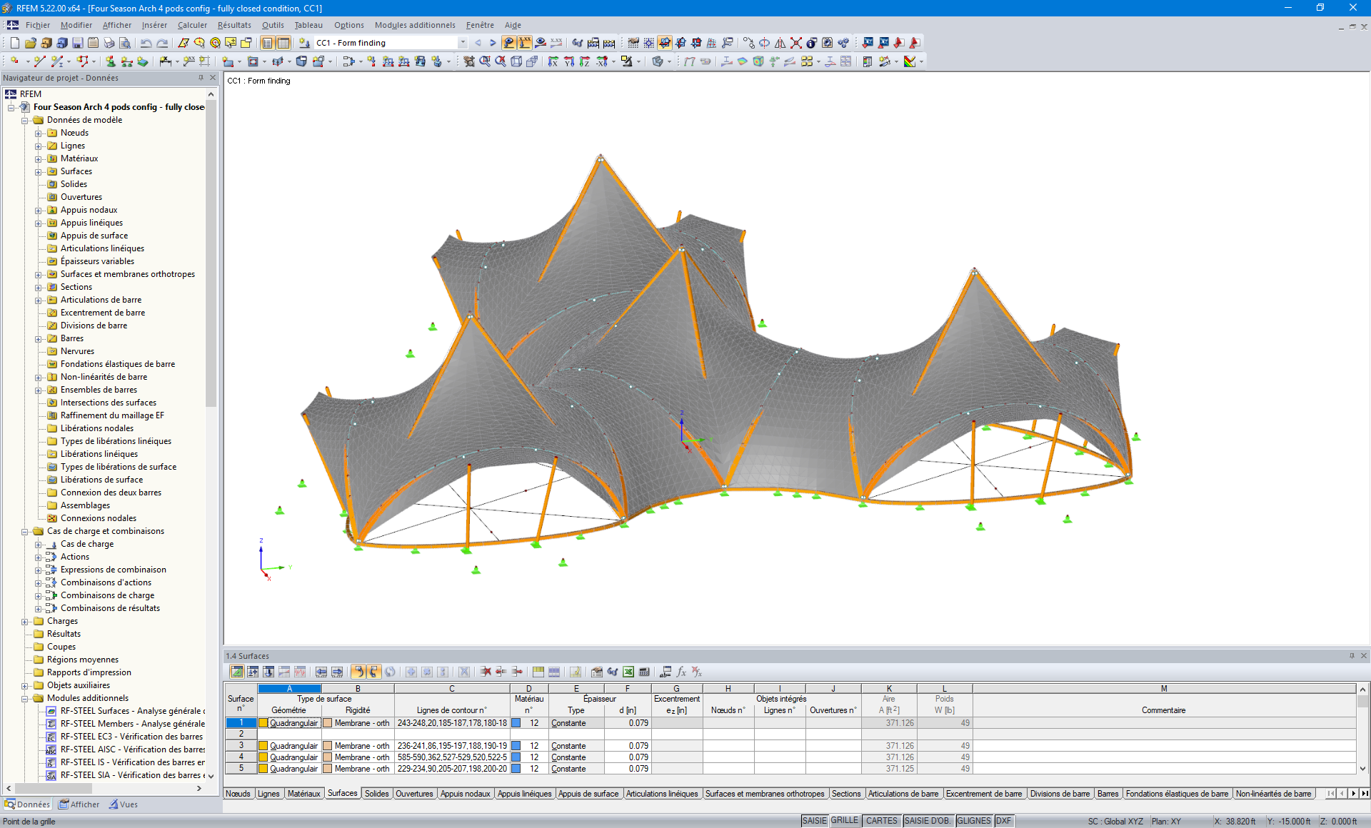 | Nombre de surfaces | 21 |