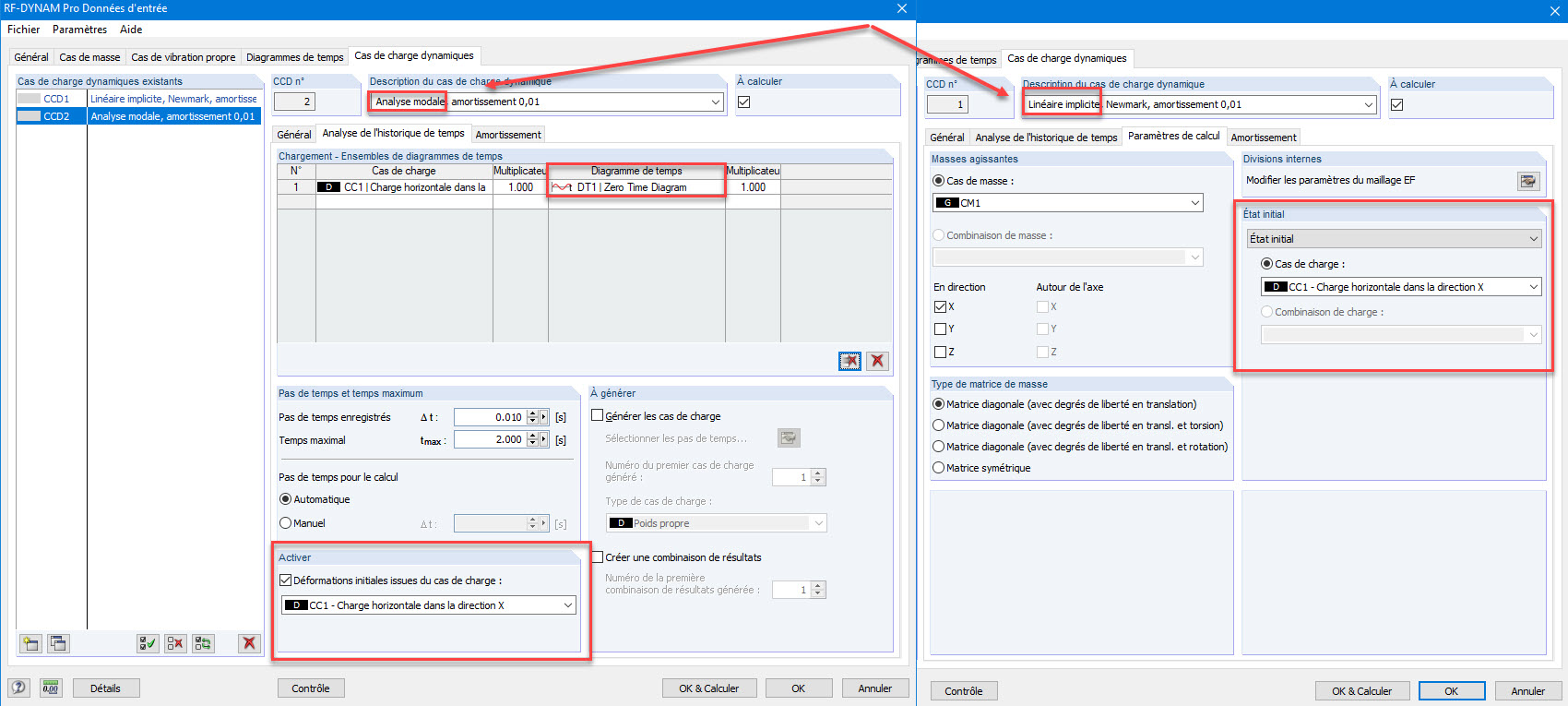 Activation des déformations initiales et de l'état initial dans les cas de charge dynamiques